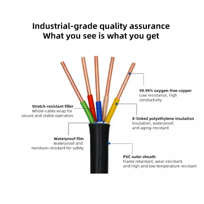 2.Operación estable a altas temperaturas: El aislamiento XLPE garantiza que el cable de alimentación con revestimiento de PVC aislado con aislamiento XLPE resistente al fuego sea estable en ambientes normales de alta temperatura o en caso de sobrecarga.